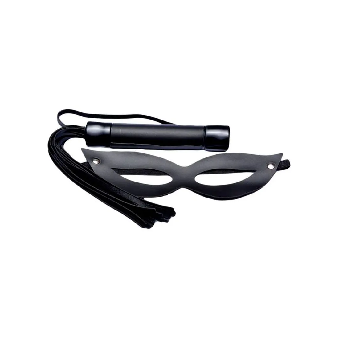 Kit Chicote Preto em Tiras de 20cm e Máscara Tiazinha