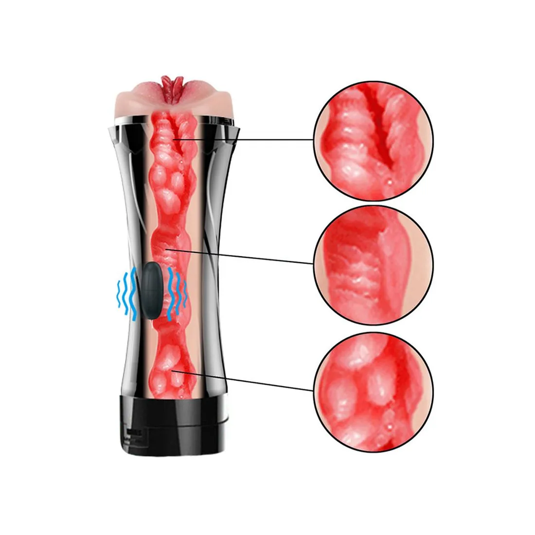 Seu principal diferencial é que ele realmente traz um tom mais realístico para sua estimulação, a ponta do acessório é composta por uma vagina feita em material que se assemelha ao toque da pele humana, possibilitando sensações diferenciadas na hora de se masturbar.